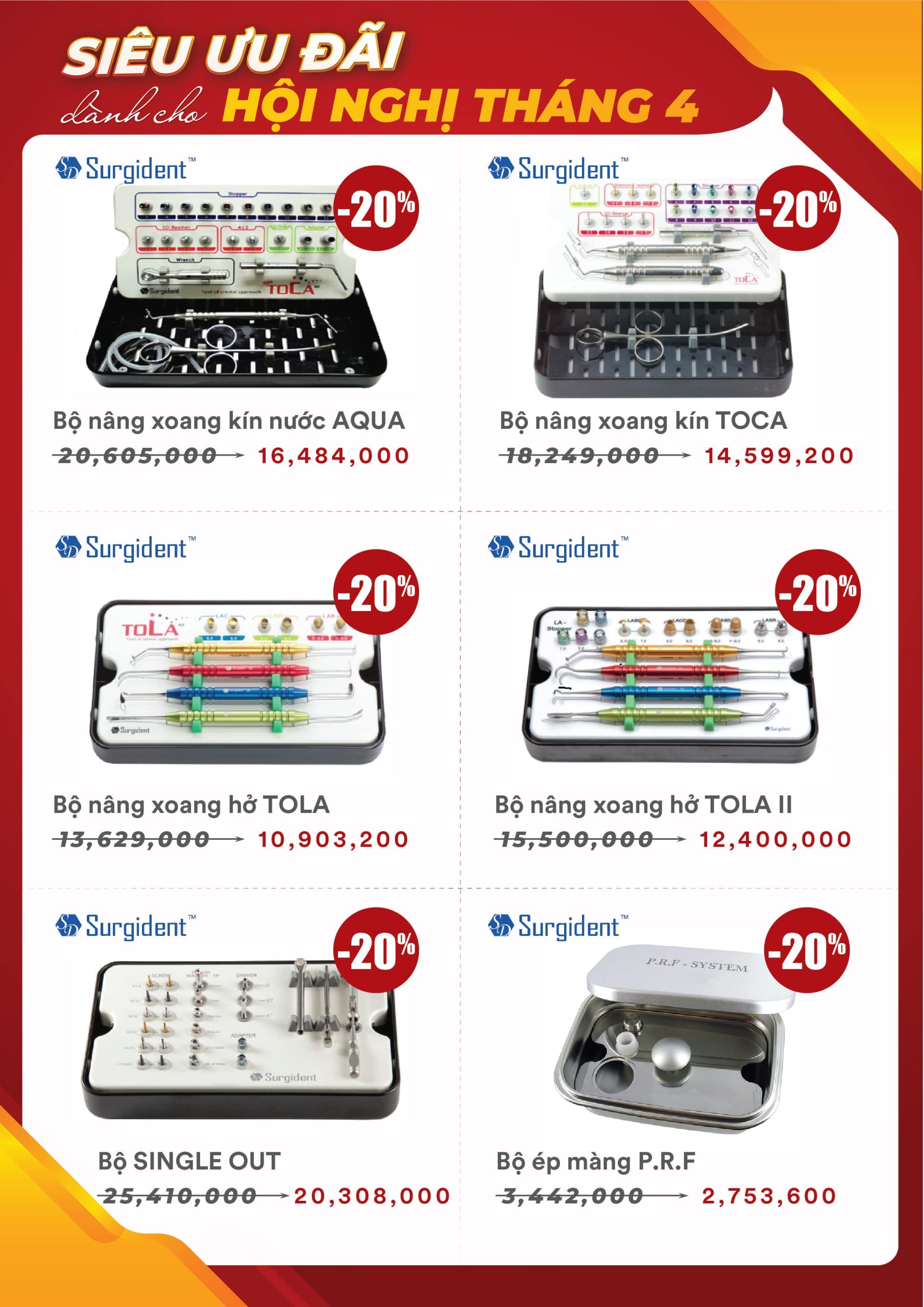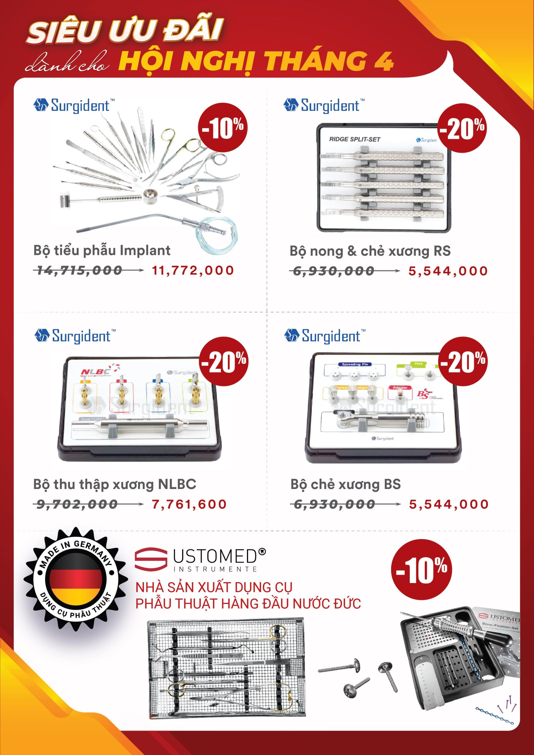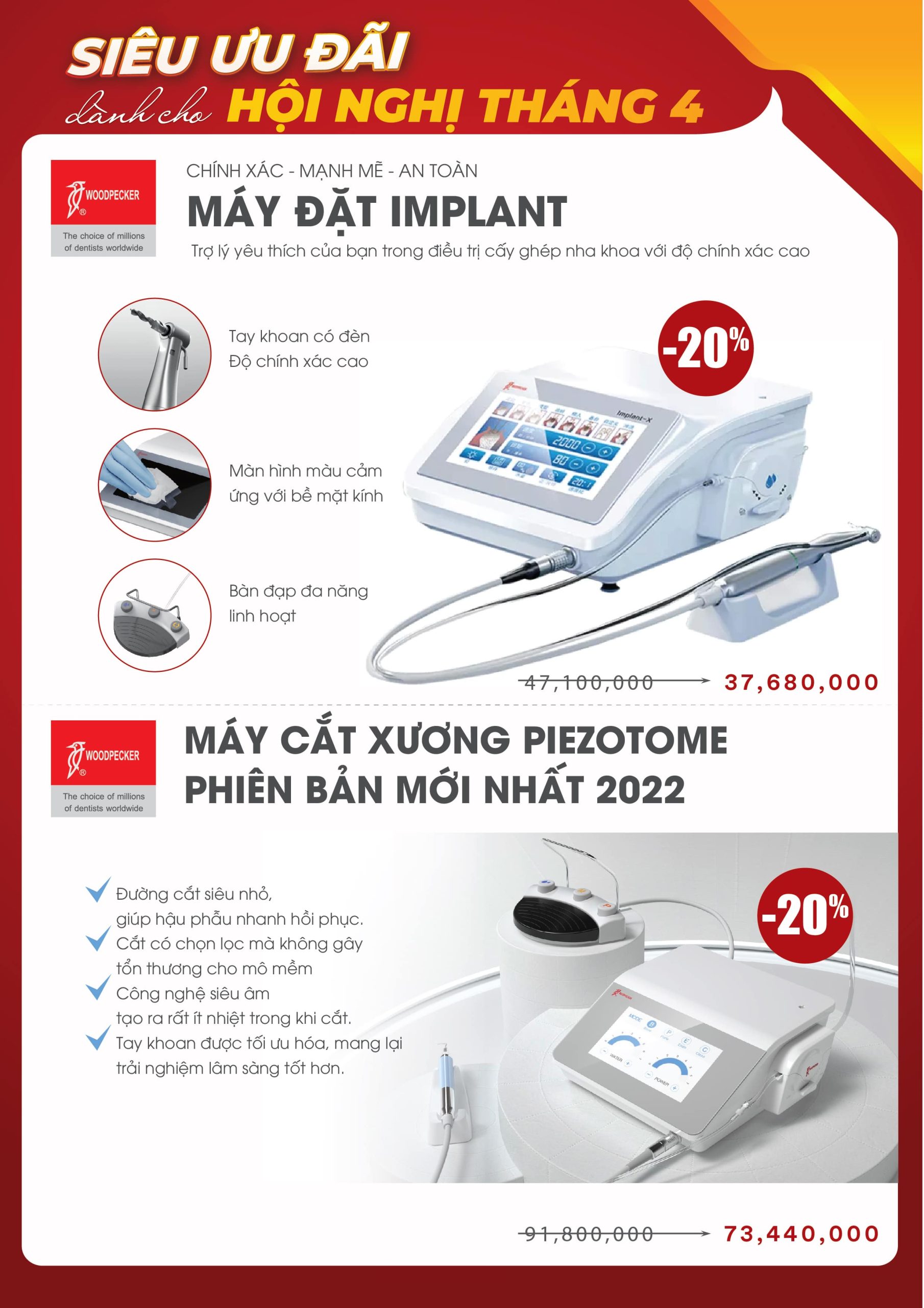 – Giảm 20% cho máy đặt implant, máy cắt xương và bộ kit.