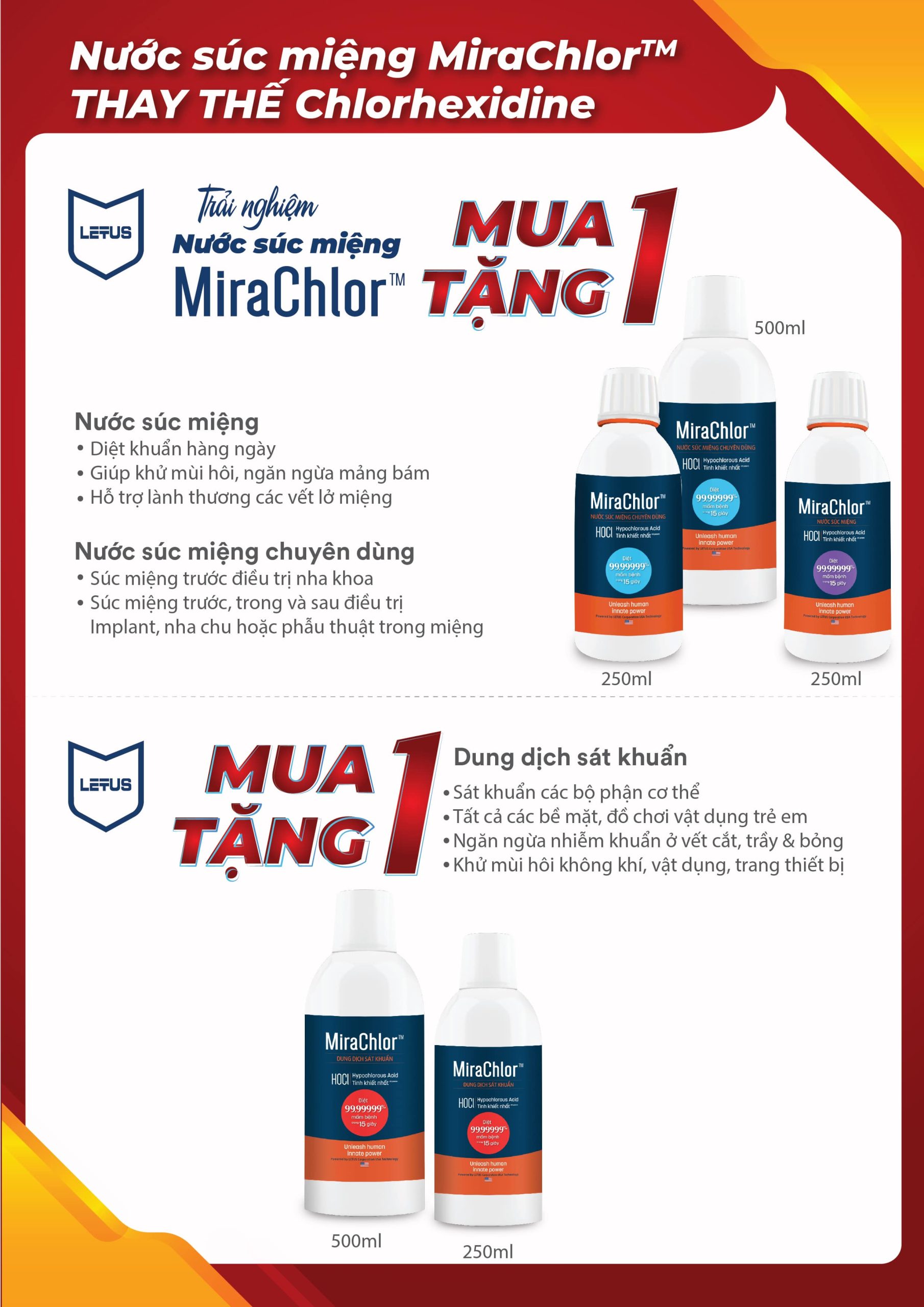 – Mua 1 Tặng 1 với nước súc miệng/sát khuẩn MiraChlor.
