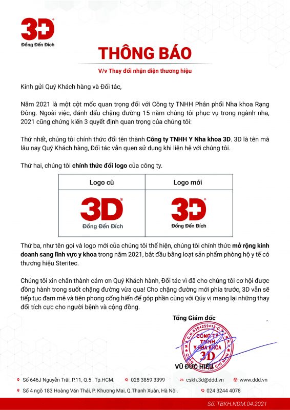 Y Nha Khoa 3D xin thông báo đến Quý Bác sĩ, Quý Khách...