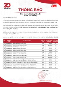 THÔNG BÁO ĐIỀU CHỈNH GIÁ CÁC SẢN PHẨM 3M