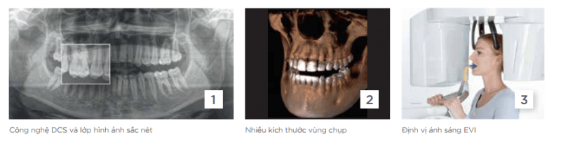 Để sử dụng tốt nhất ở các kích thước vùng chụp, bộ định vị ánh sáng EVI sẽ tự động chỉ ra vị trí của bệnh nhân trong trùm tia.