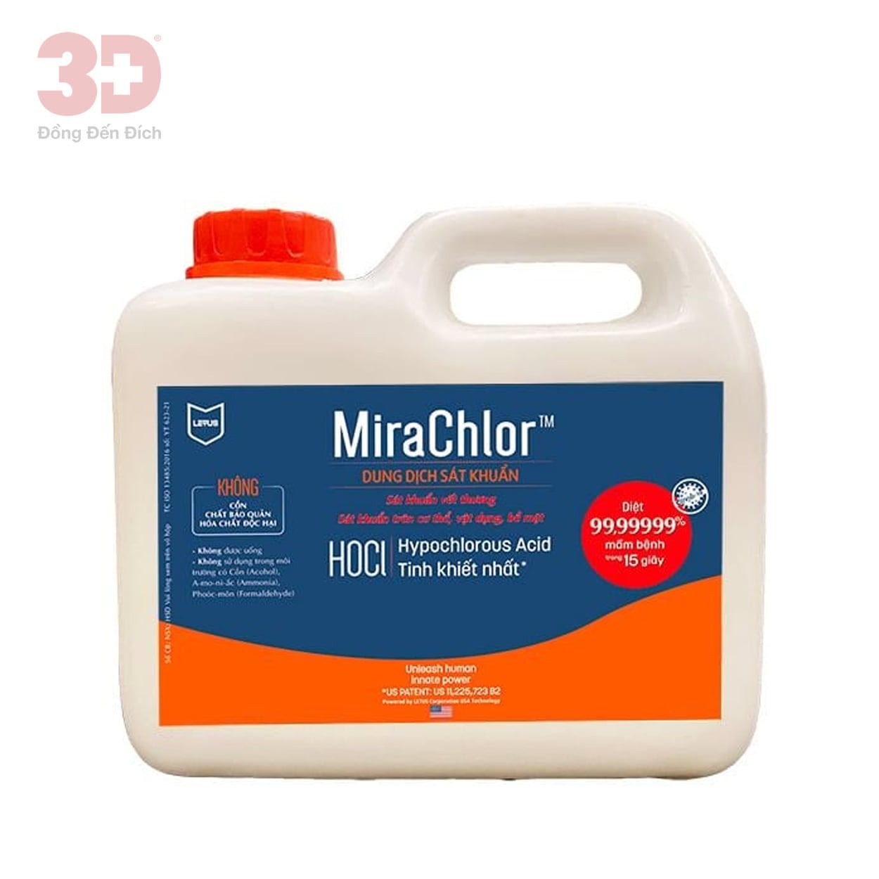 Dung dịch sát khuẩn MiraChlor là HOCl tinh khiết nhất giống như HOCl được tạo ra bởi cơ thể. Có khả năng diệt 99,99999% mầm bệnh gồm vi khuẩn, vi-rút, nấm, nấm men và bào tử trong 15 giây.